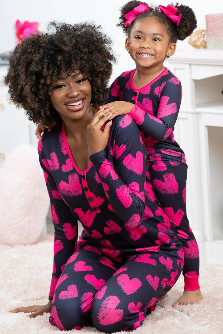 (Custom Design MOQ 5) Adult Pink Heart Print Navy Woman Valentine's Pajamas Clothes Set