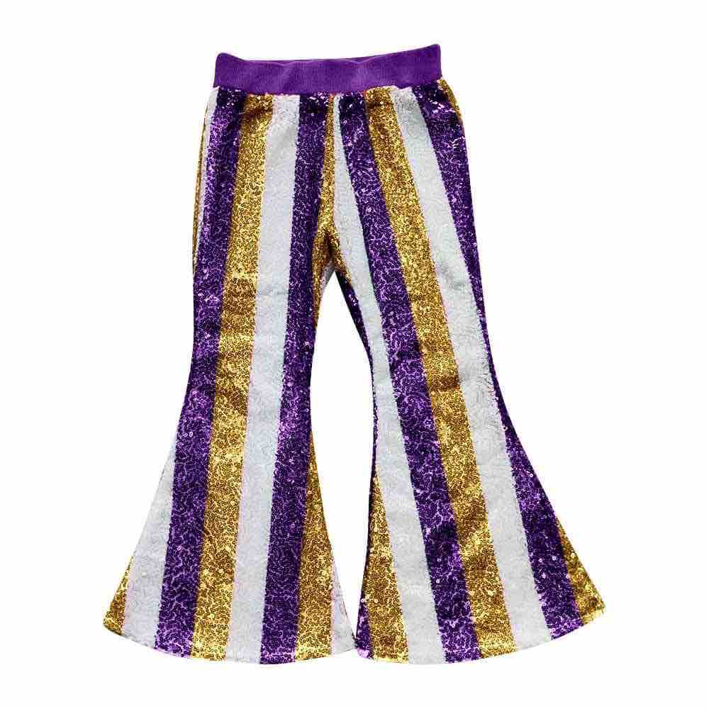 (Custom Design MOQ 5) Adult purple golden stripes sequin bell bottom pants