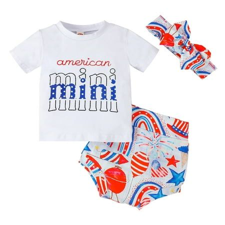 (Custom Design MOQ 5) American Mini Top Baby Girls 4th of July Bummie Sets