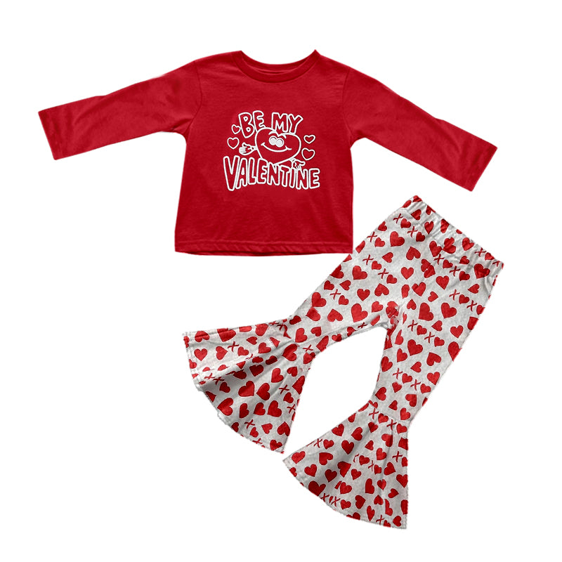 (Custom Design MOQ 5) Be My Valentine Heart Print Bell Pants Girls Clothes Set
