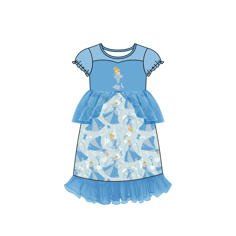 (Custom Design MOQ 5) Blue cartoon princess tulle dress