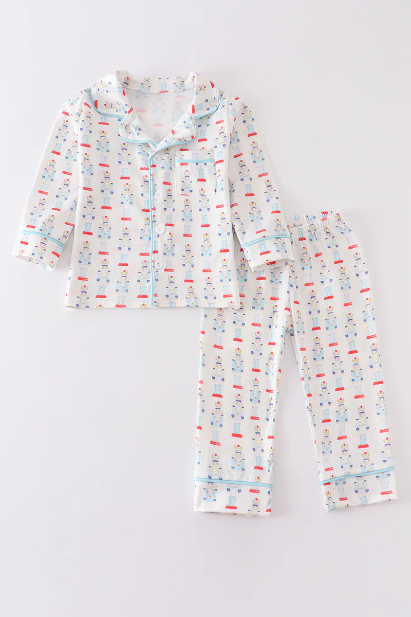 (Custom Design MOQ 5) Blue Christmas Soldier Boys Pajamas Clothes Set
