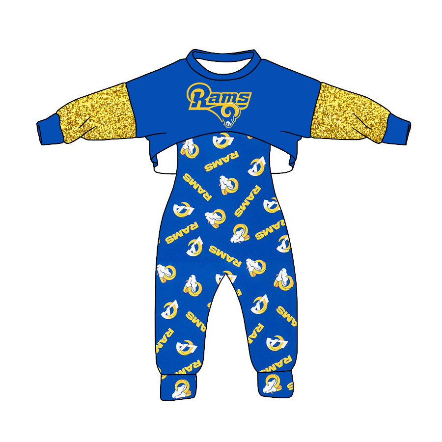 (Custom Design MOQ 5) Blue R Football Team's Girls Jumpsuit Clothes Set