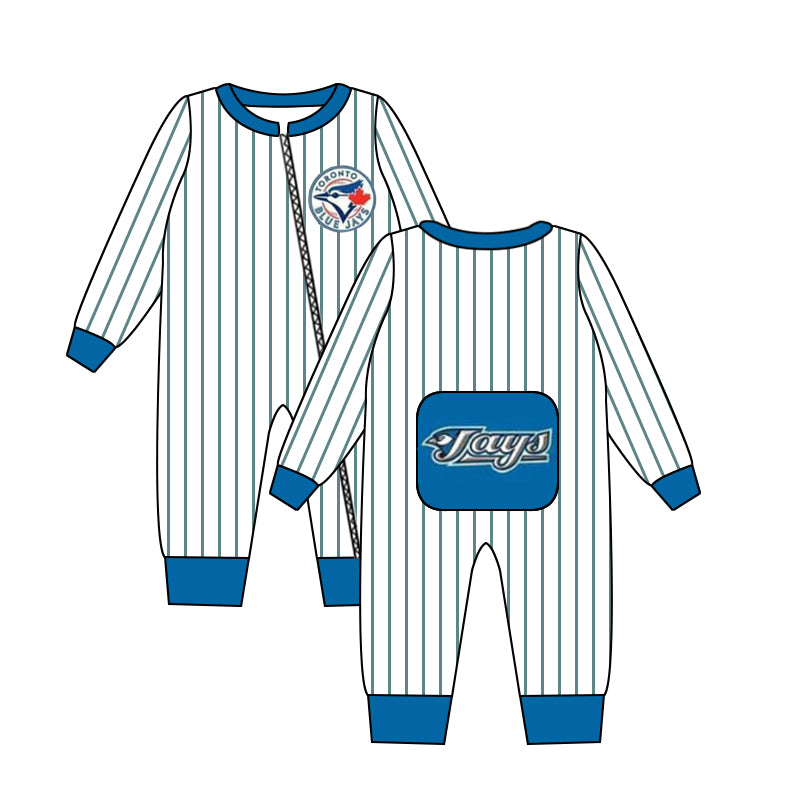 (Custom Design MOQ 5) Blue Sports Team's J Print Infant Zipper Romper