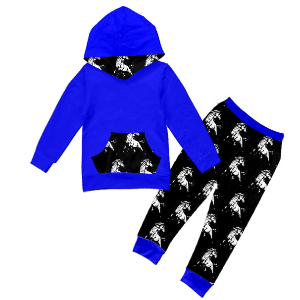 (Custom Design MOQ 5) Boys football team's blue hoodie top fall clothes set