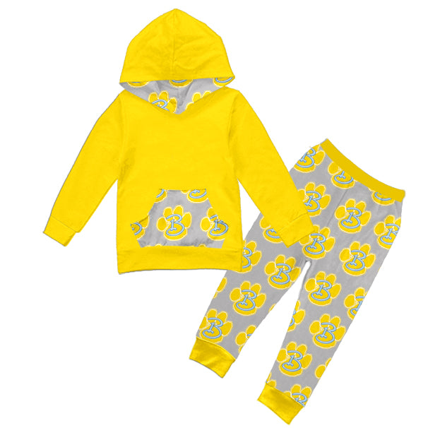 (Custom Design MOQ 5) Boys football team's yellow hoodie top fall clothes set