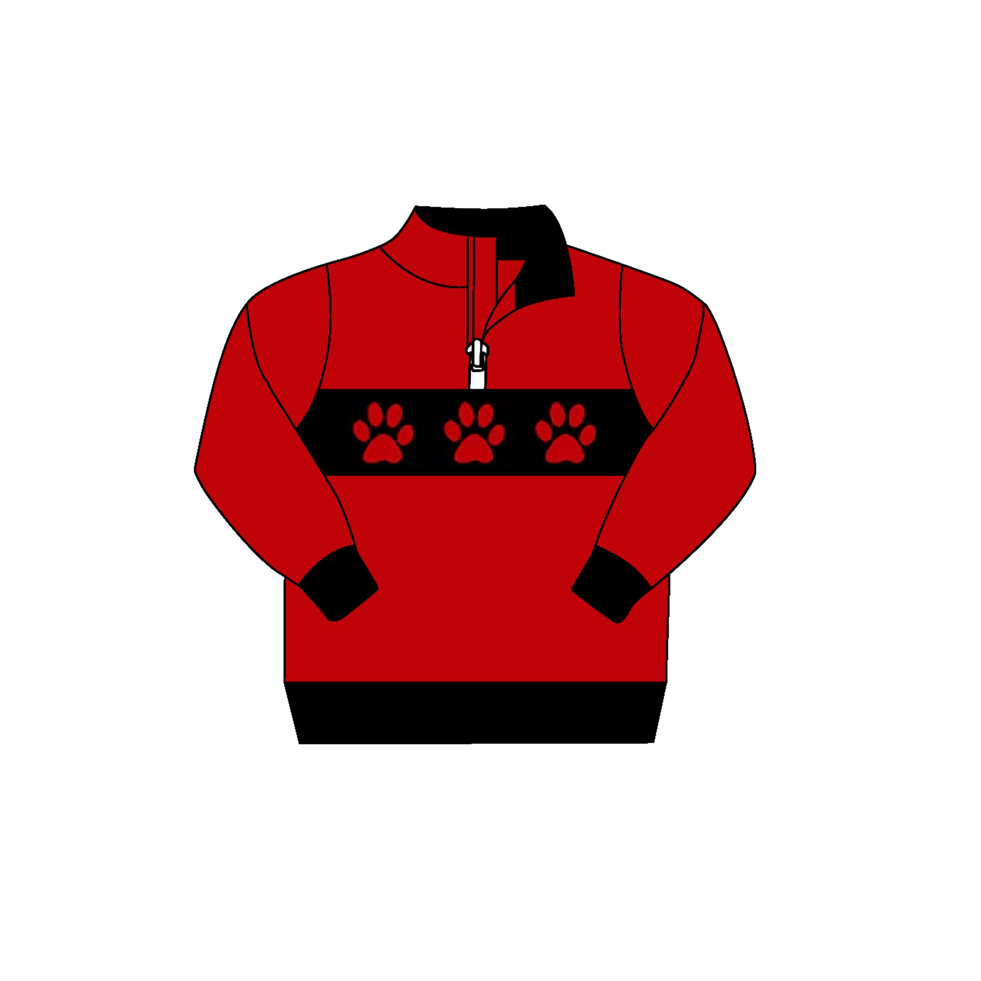 (Custom Design MOQ 5) Boys red football team's long sleeve zipper pullover shirts