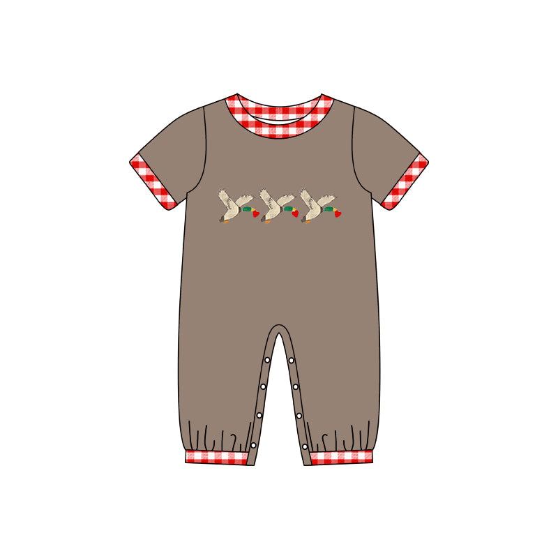 (Custom Design MOQ 5) Brown Duck Heart Print Baby Boys Valentine's Day Romper
