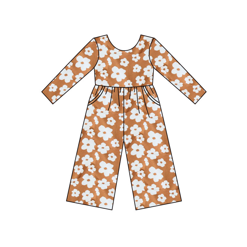 (Custom Design MOQ 5) Brown flowers print girls fall jumpsuits