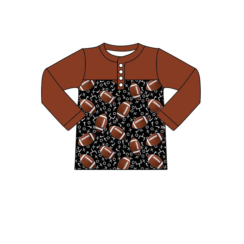 (Custom Design MOQ 5) Brown Football Print Boys Button Tee Shirts Top