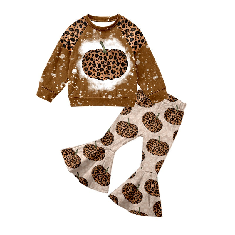 (Custom Design MOQ 5) Brown leopard pumpkin print girls fall clothes set