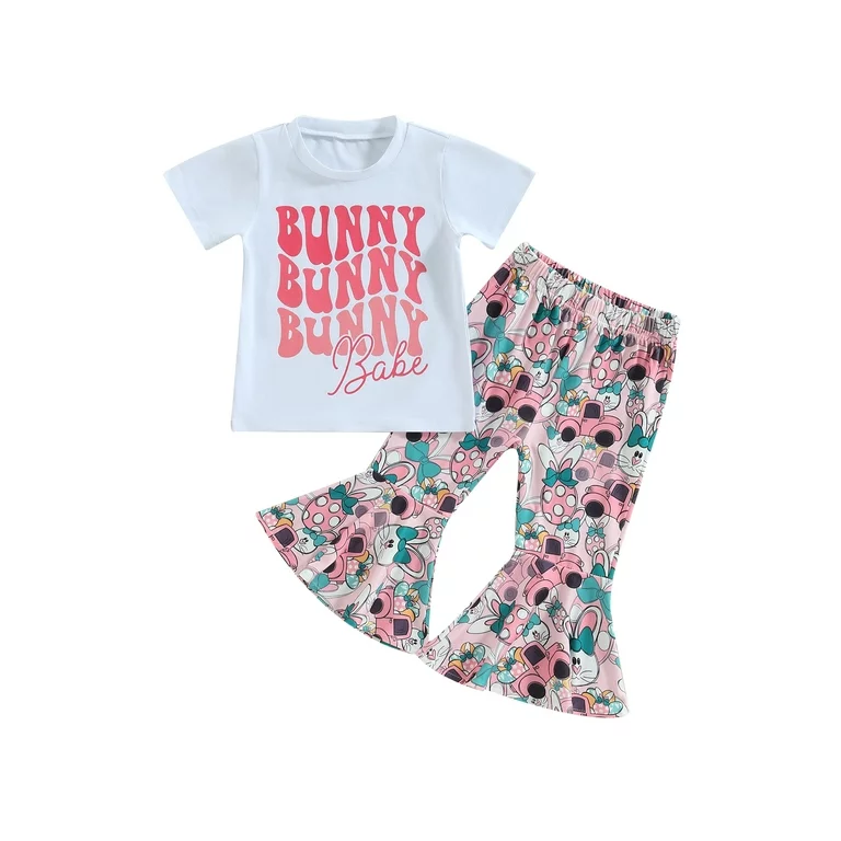 (Custom Design MOQ 5) Bunny Baby Print Bell Pants Girls Easter Clothes Set