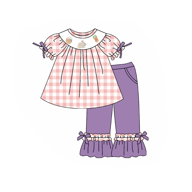 (Custom Design MOQ 5) Bunny Carrot Print Girls Easter Clothes Set