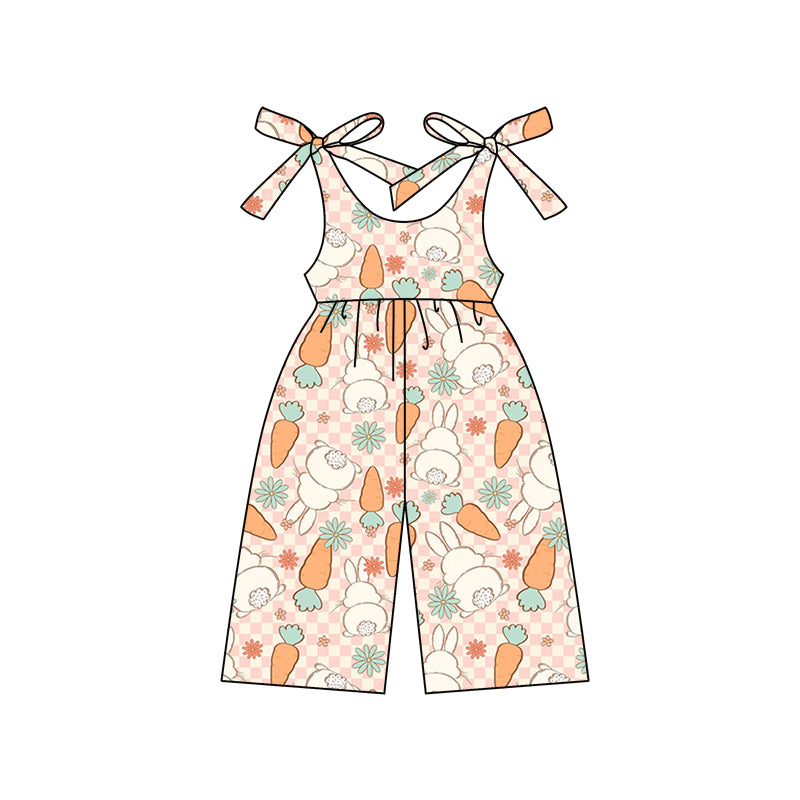 (Custom Design MOQ 5) Bunny Carrot Print Girls Easter Jumpsuits