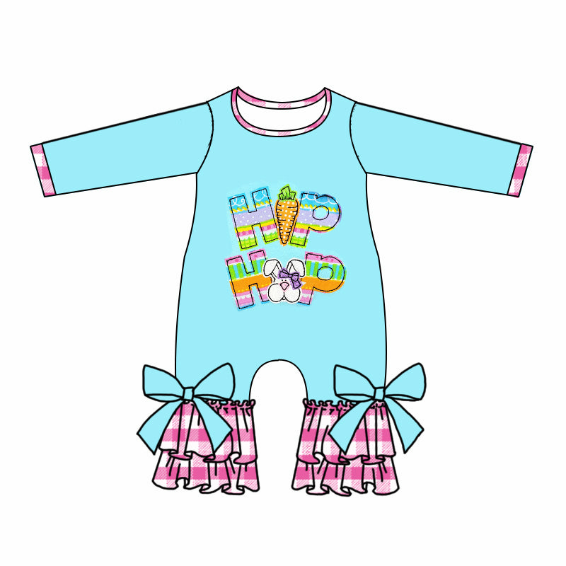 (Custom Design MOQ 5) Bunny Hop Hop Print Baby Girls Easter Romper