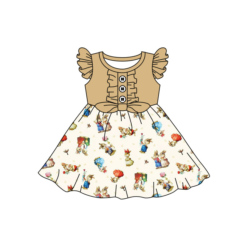 (Custom Design MOQ 5) Bunny Print Girls Knee Length Easter Dress