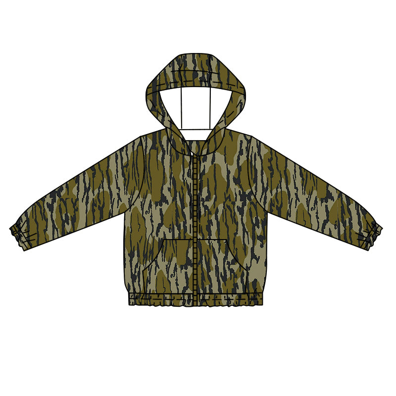 (Custom Design MOQ 5) Camo Print Kids Pockets Hoodie Tee Shirts Zipper Jacket Top