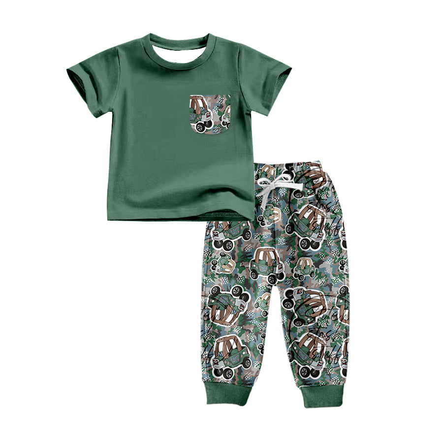 (Custom Design MOQ 5) Camo Truck Print Boys Pocket Top Clothes Set