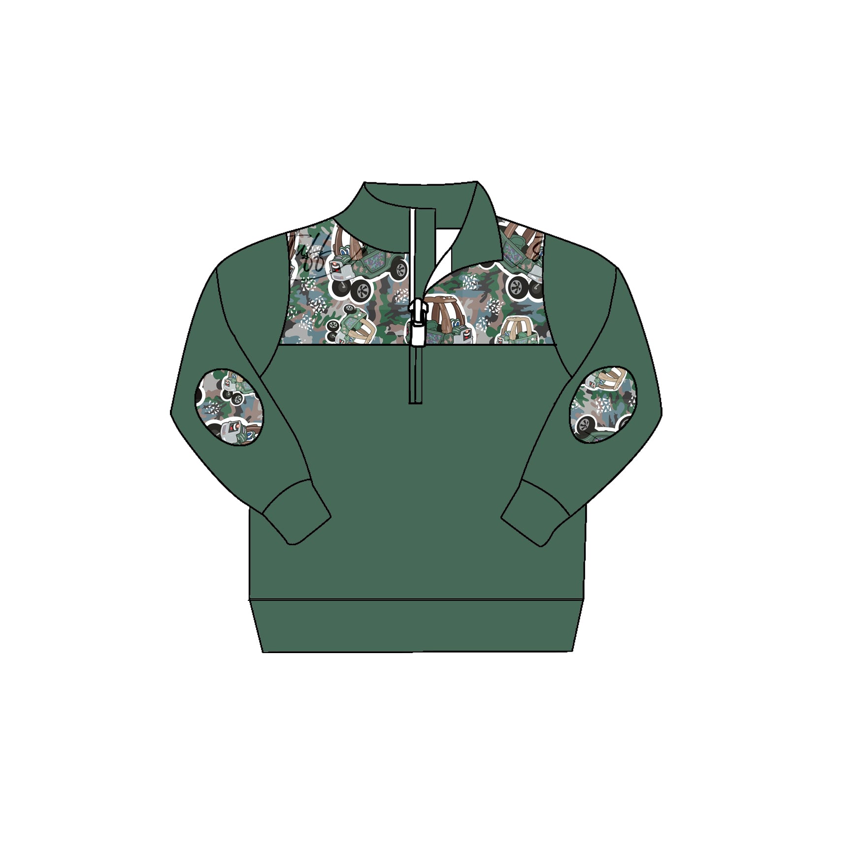(Custom Design MOQ 5) Camo Truck Print Zip Pullover Boys Tee Shirts Top