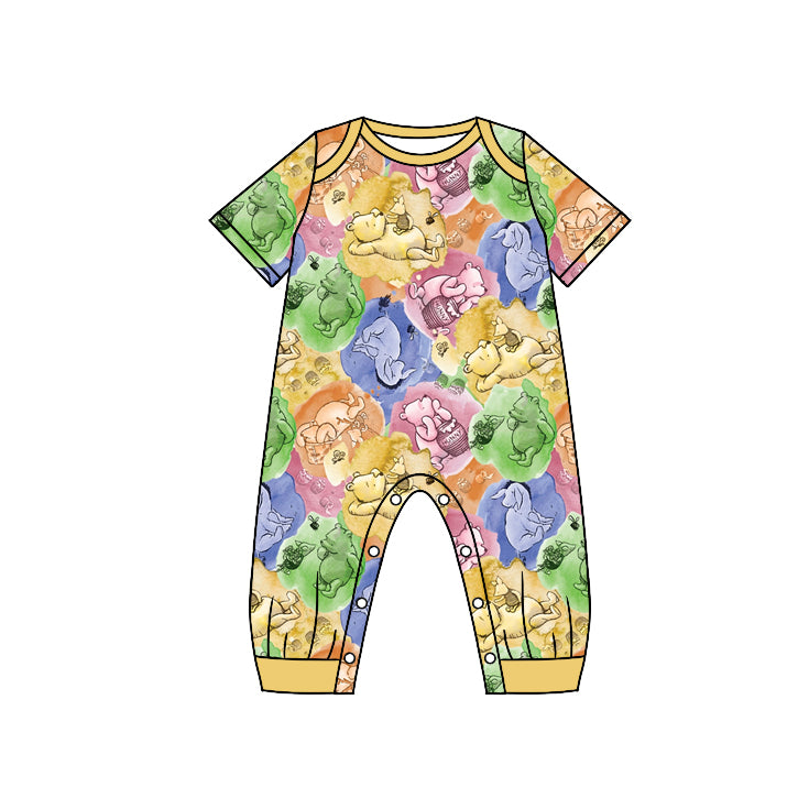 (Custom Design MOQ 5) Cartoon Bear Cute Animals Baby Boys Romper
