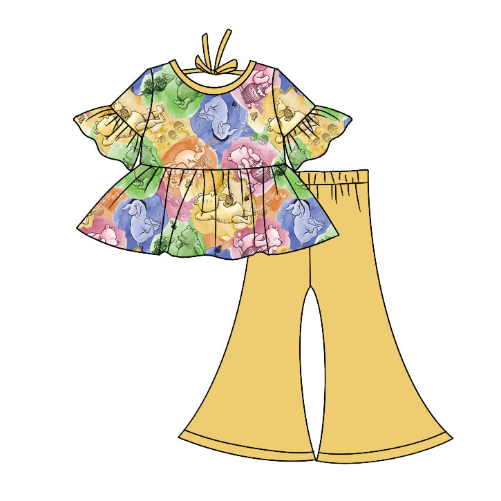 (Custom Design MOQ 5) Cartoon Bear Cute Animals Grils Clothes Set