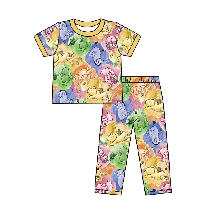 (Custom Design MOQ 5) Cartoon Bear Cute Animals Kids Pajamas Clothes Set