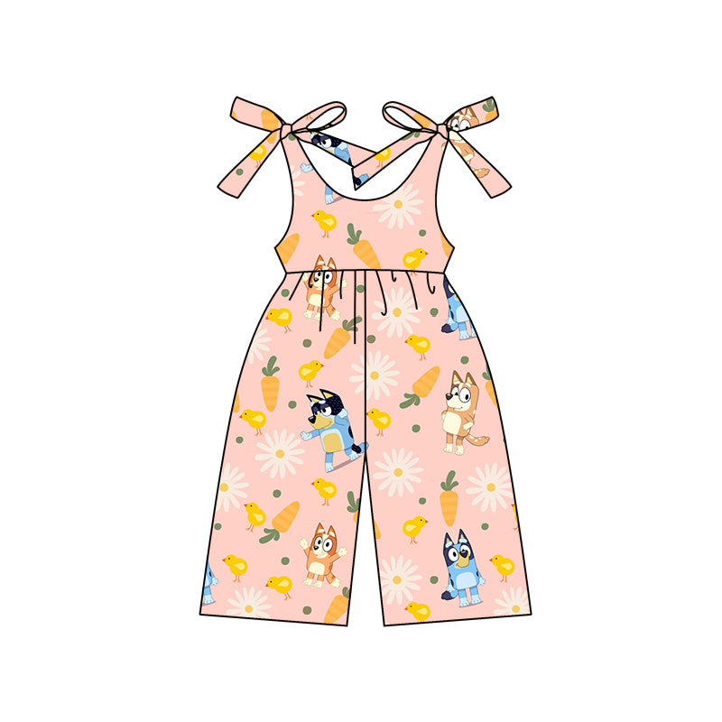 (Custom Design MOQ 5) Cartoon Dog Carrot Print Girls Easter Jumpsuits