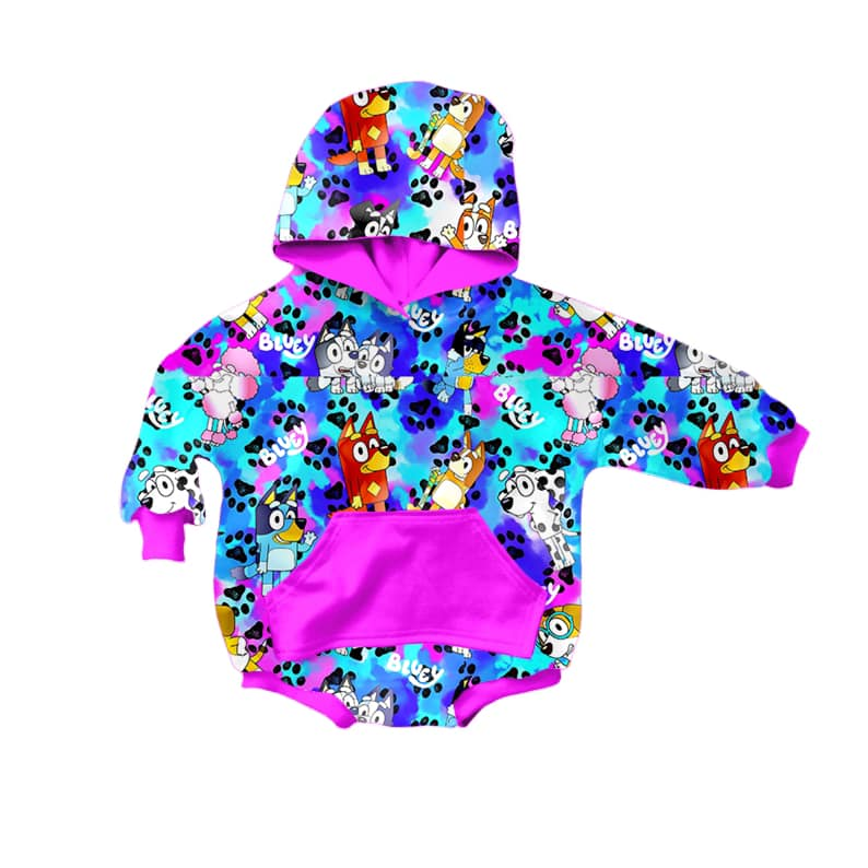 (Custom Design MOQ 5) Cartoon dog tie-dye baby girls hoodie romper
