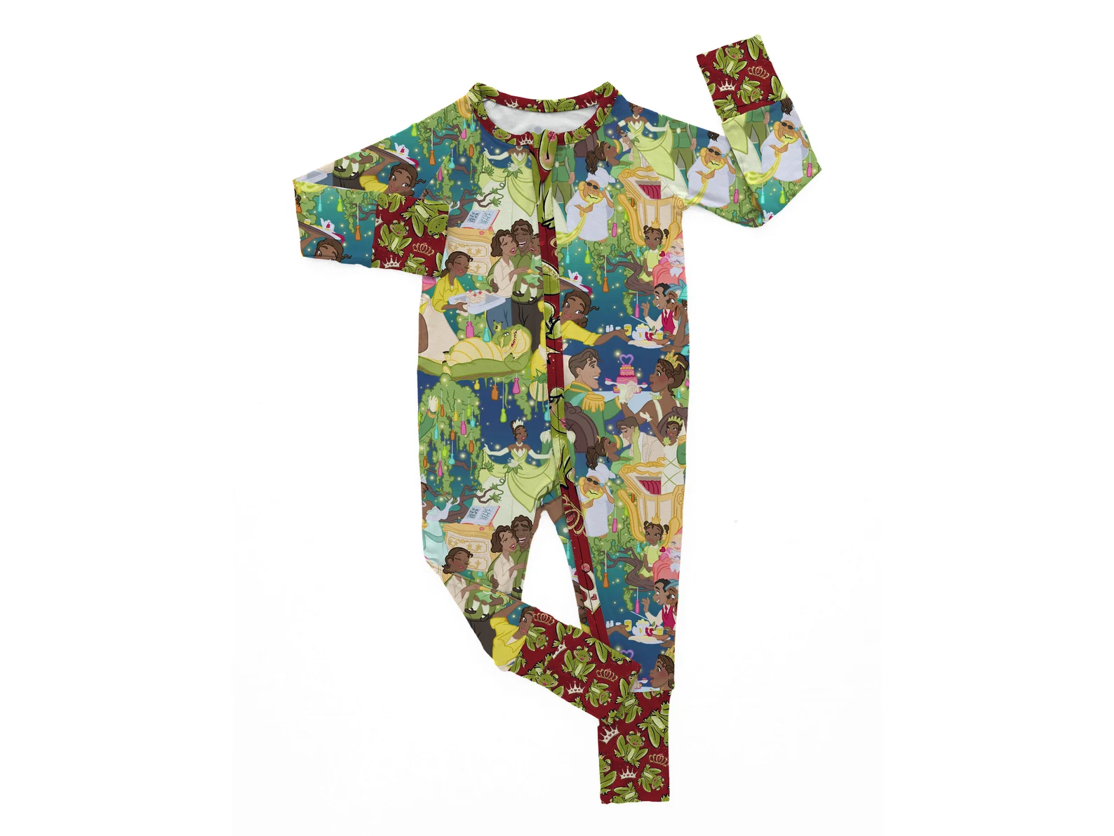 (Custom Design MOQ 5) Cartoon frog princess print baby girls zipper romper