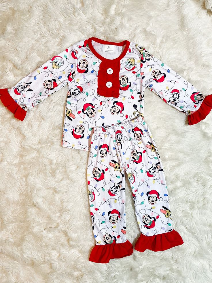 (Custom Design MOQ 5) Cartoon mouse girls Christmas pajamas