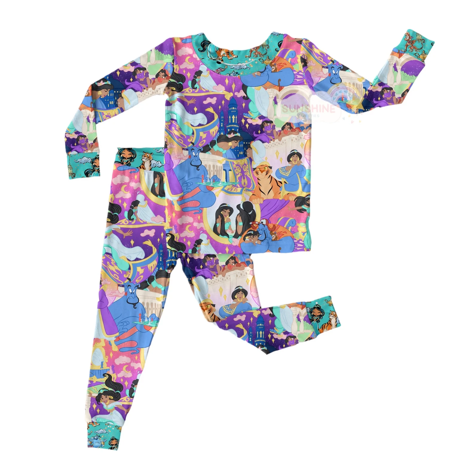 (Custom Design MOQ 5) Cartoon princess print pajamas clothes set