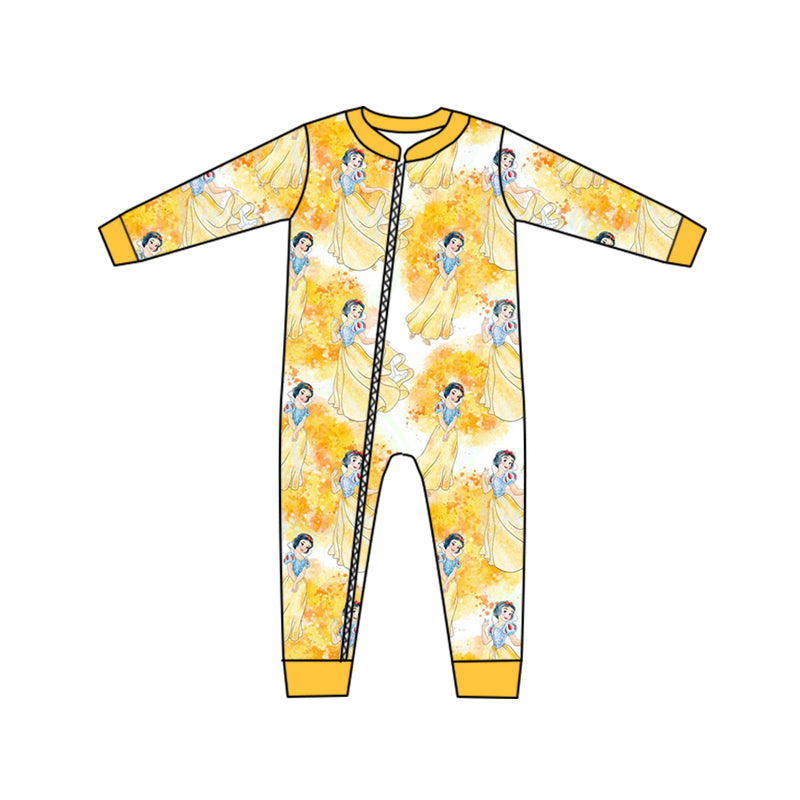 (Custom Design MOQ 5) Cartoon snow princess with apple baby girls zipper romper