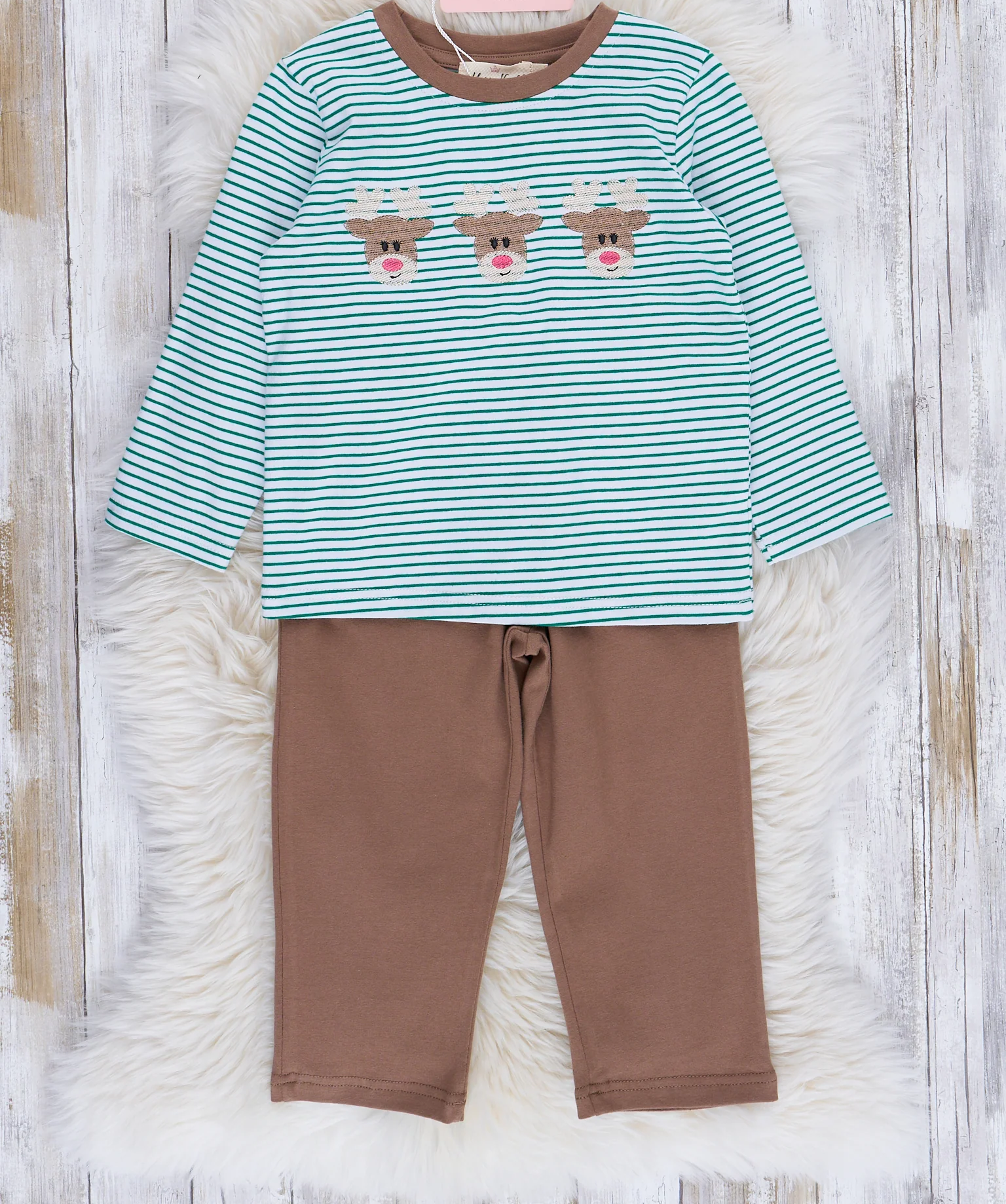 (Custom Design MOQ 5) Christmas Deer Print Boys Clothes Set