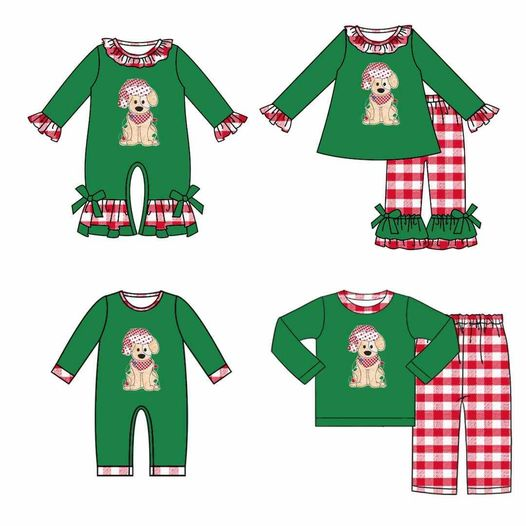 (Custom Design MOQ 5) Christmas dog green baby boys romper