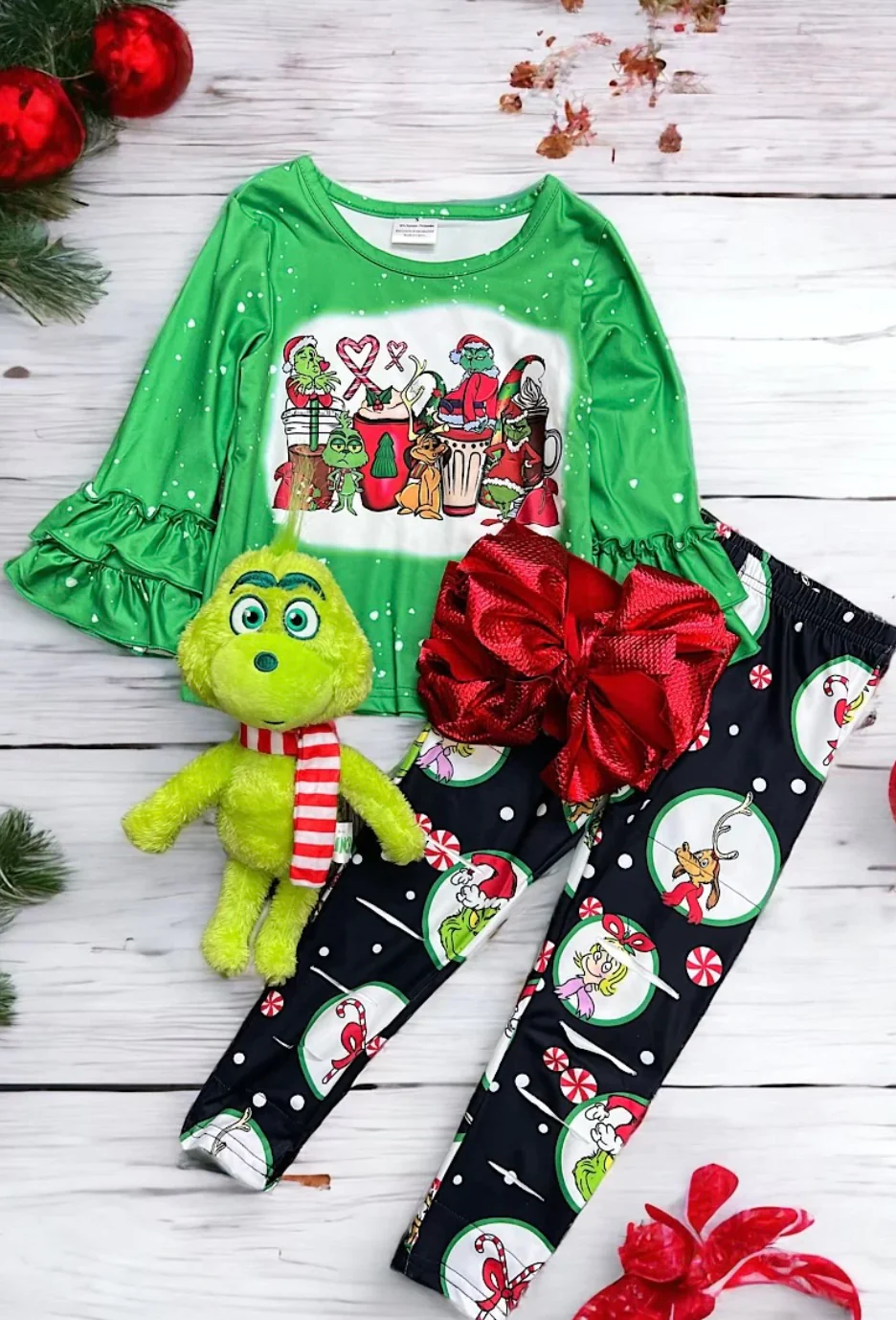 (Custom Design MOQ 5) Christmas Frog Print Legging Pants Girls Clothes Set