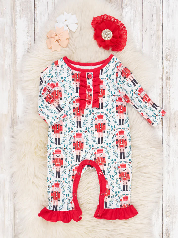 (Custom Design MOQ 5) Christmas soldier baby girl romper