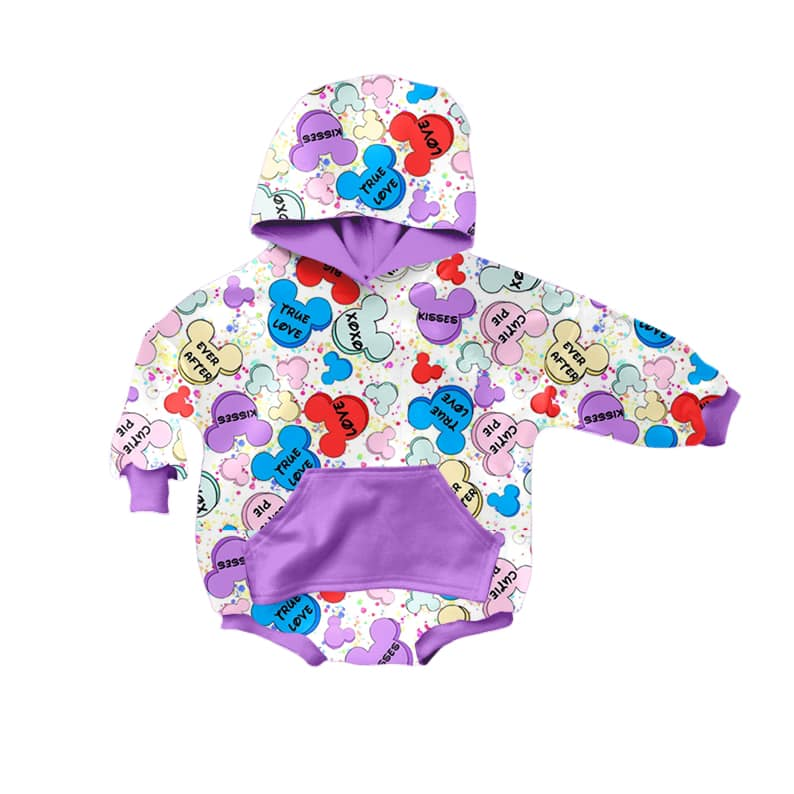 (Custom Design MOQ 5) Colorful mouse print baby girls hoodie romper