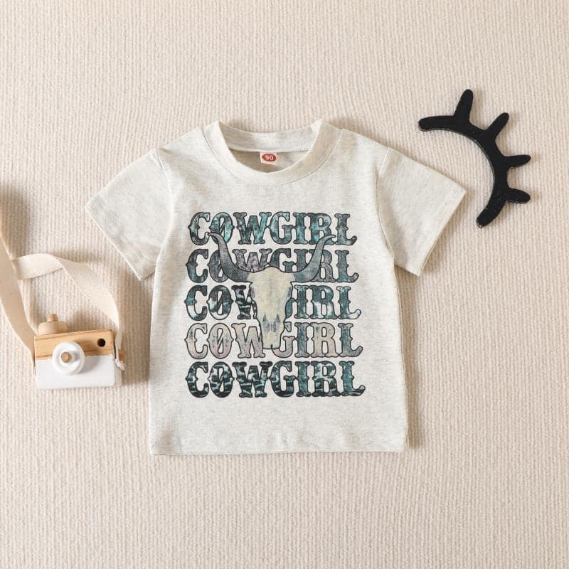 (Custom Design MOQ 5) Cowgirl skull top girls western tee shirts