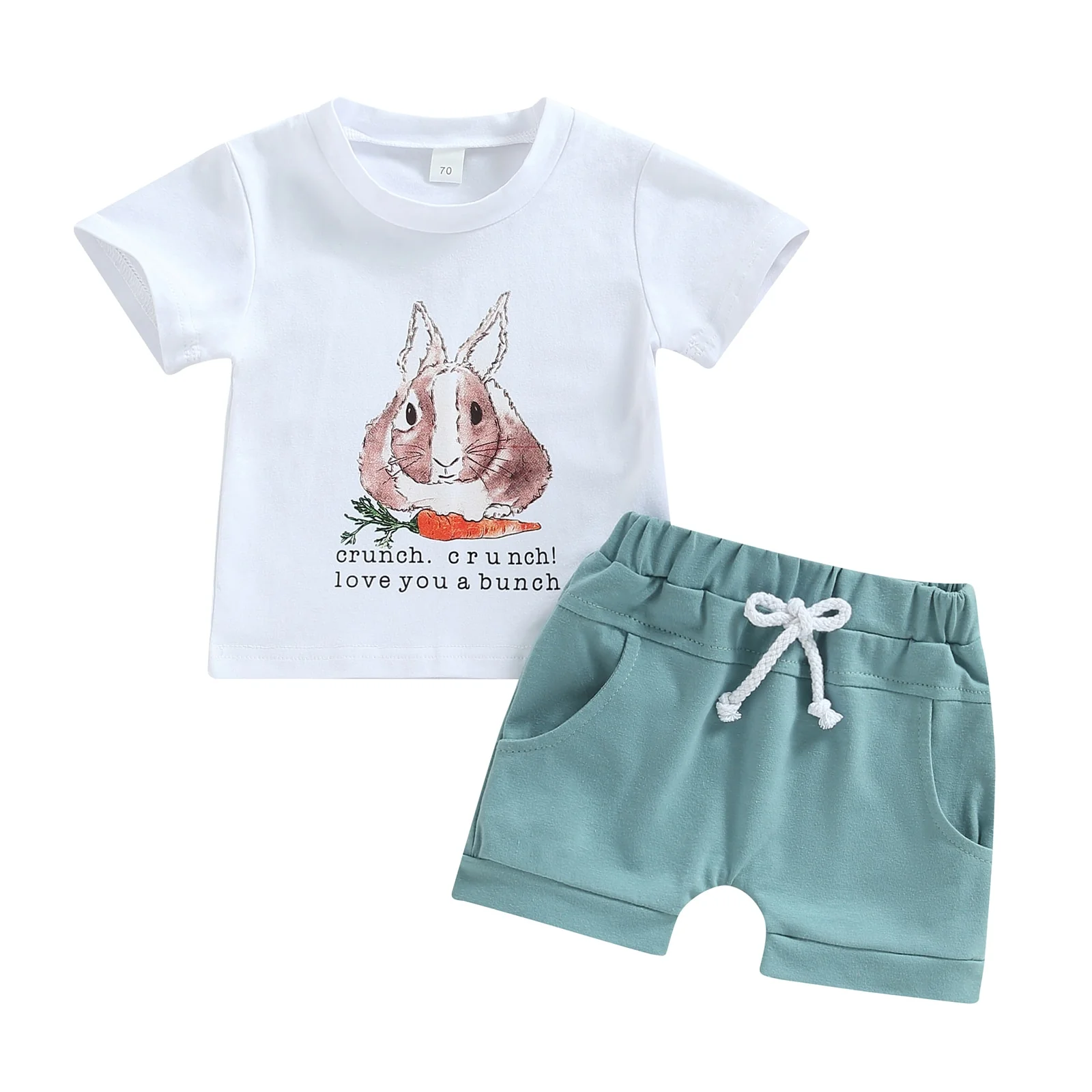 (Custom Design MOQ 5) Crunch Bunny Print Boys Easter Clothes Set