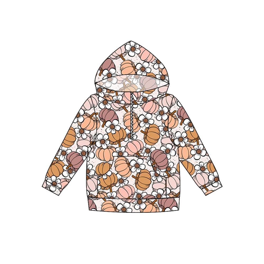 (Custom Design MOQ 5) Fall pumpkin flowers zipper hoodie tee shirts top