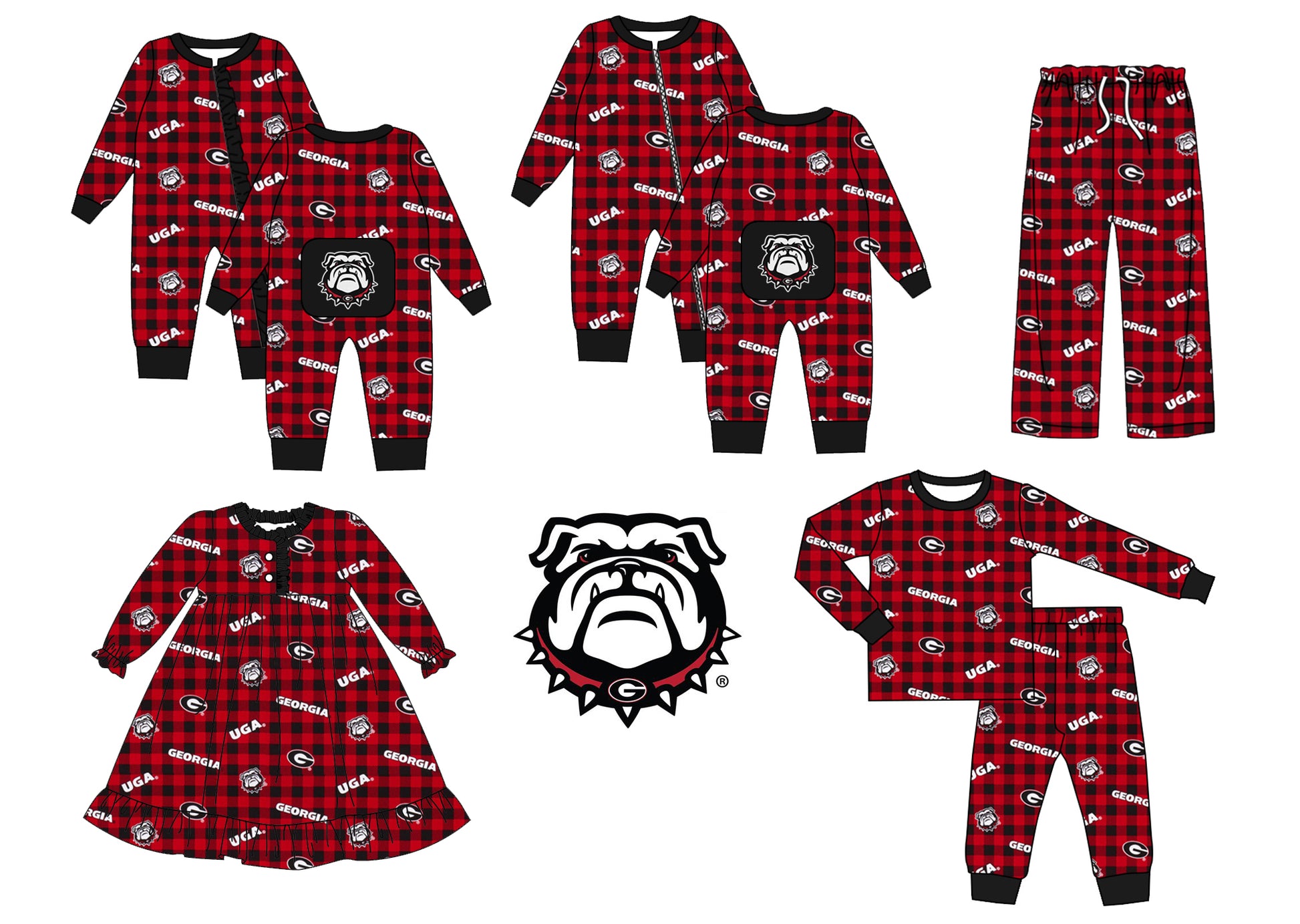 (Custom Design MOQ 5 per item) Family matching clothes Adult Bulldogs plaid football team's design C