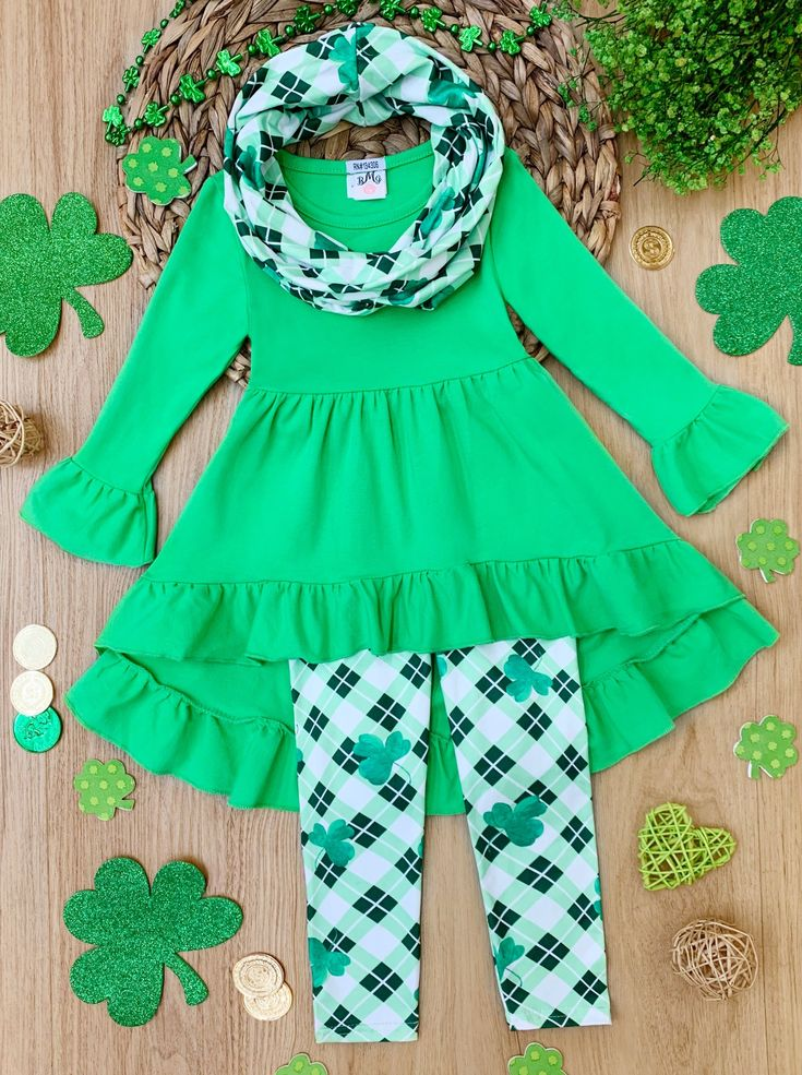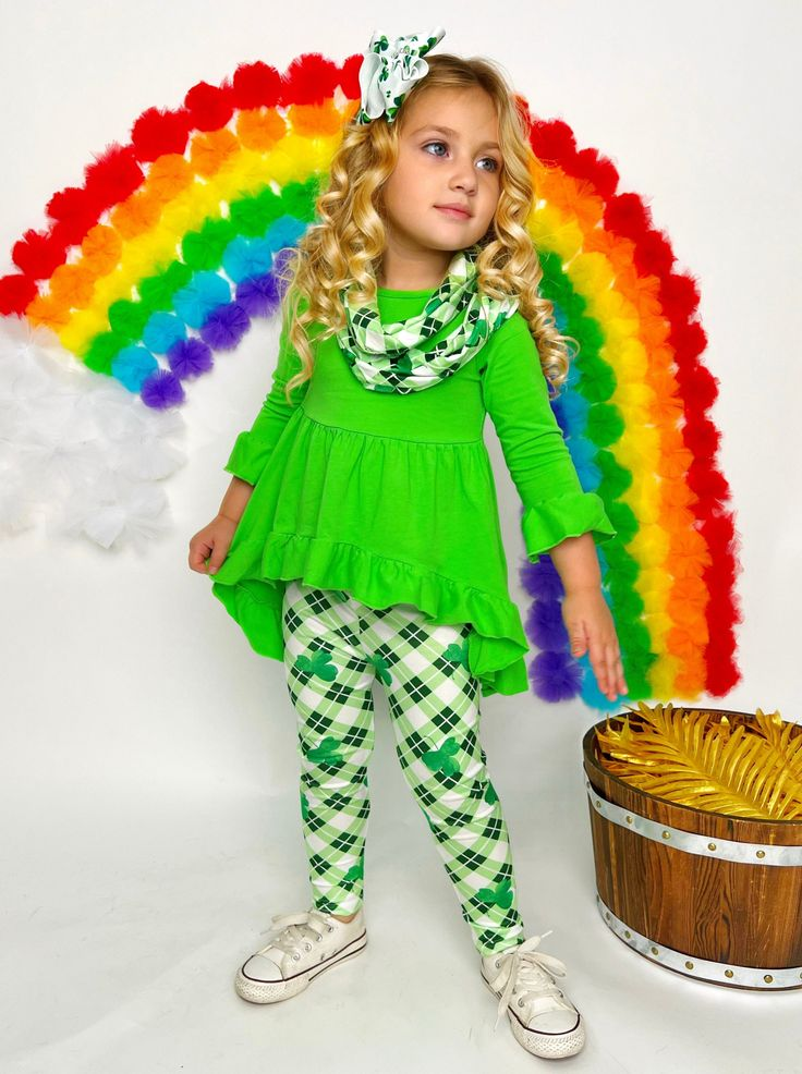 (Custom Design MOQ 5) Girls Green St. Patrick's Hi-low Outfits 3 Pieces Clothes set