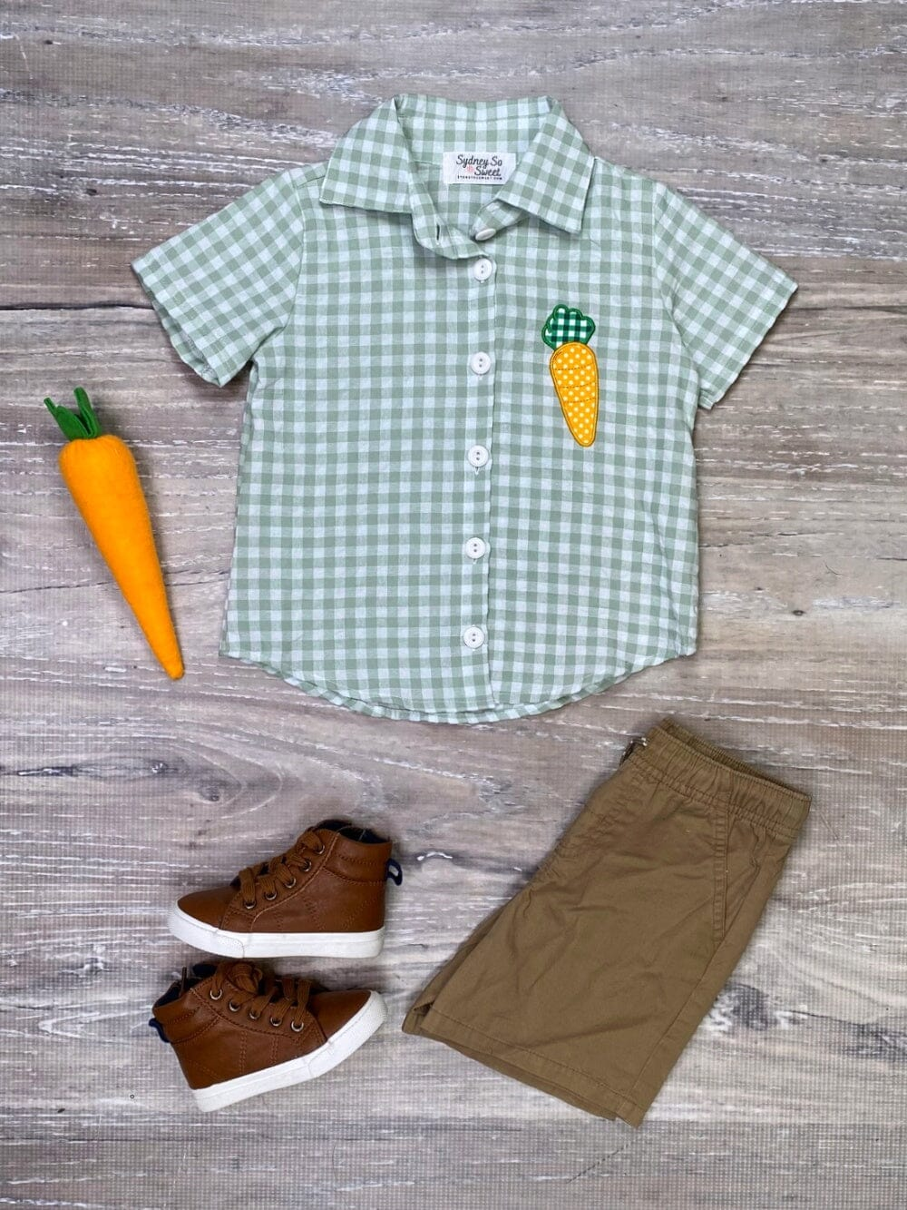 (Custom Design MOQ 5) Green Plaid Carrot Print Boys Button Tee Shirts Easter Top
