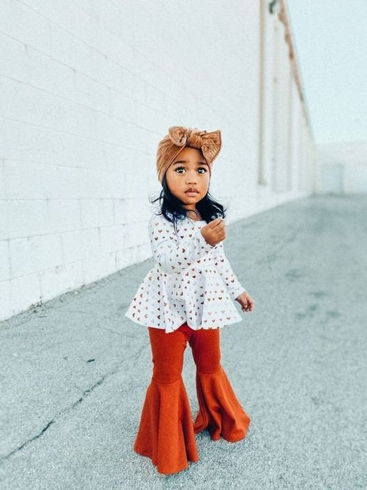 (Custom Design MOQ 5) Heart Print Top Velvet Bell Pants Girls Valentine's Clothes set
