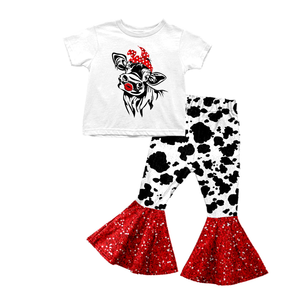 (Custom Design Preorder MOQ 5) Heifer Top Sequin Ruffle Bell Pants Girls Western Clothes Set
