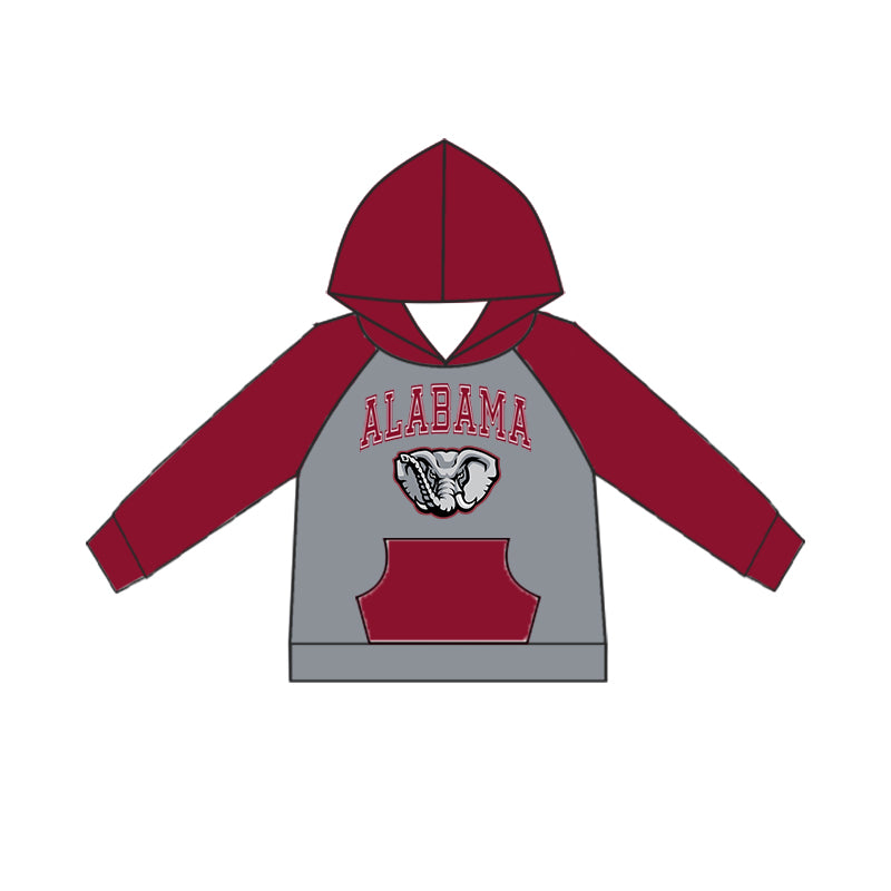 (Custom Design MOQ 5) Kids long sleeve wine hoodie pullover top