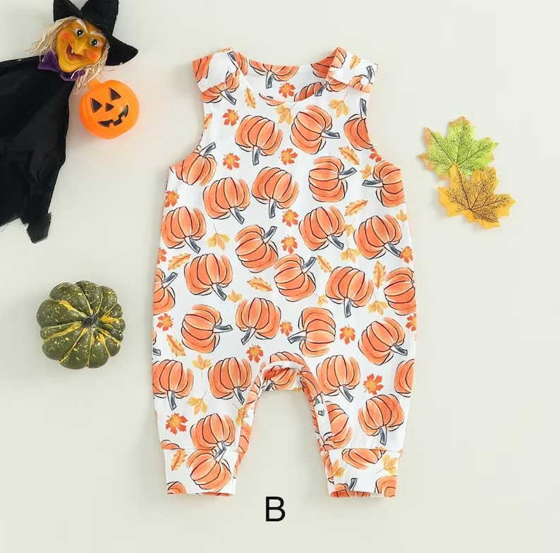 (Custom Design MOQ 5) Maple Leaf Pumpkin Fall baby romper