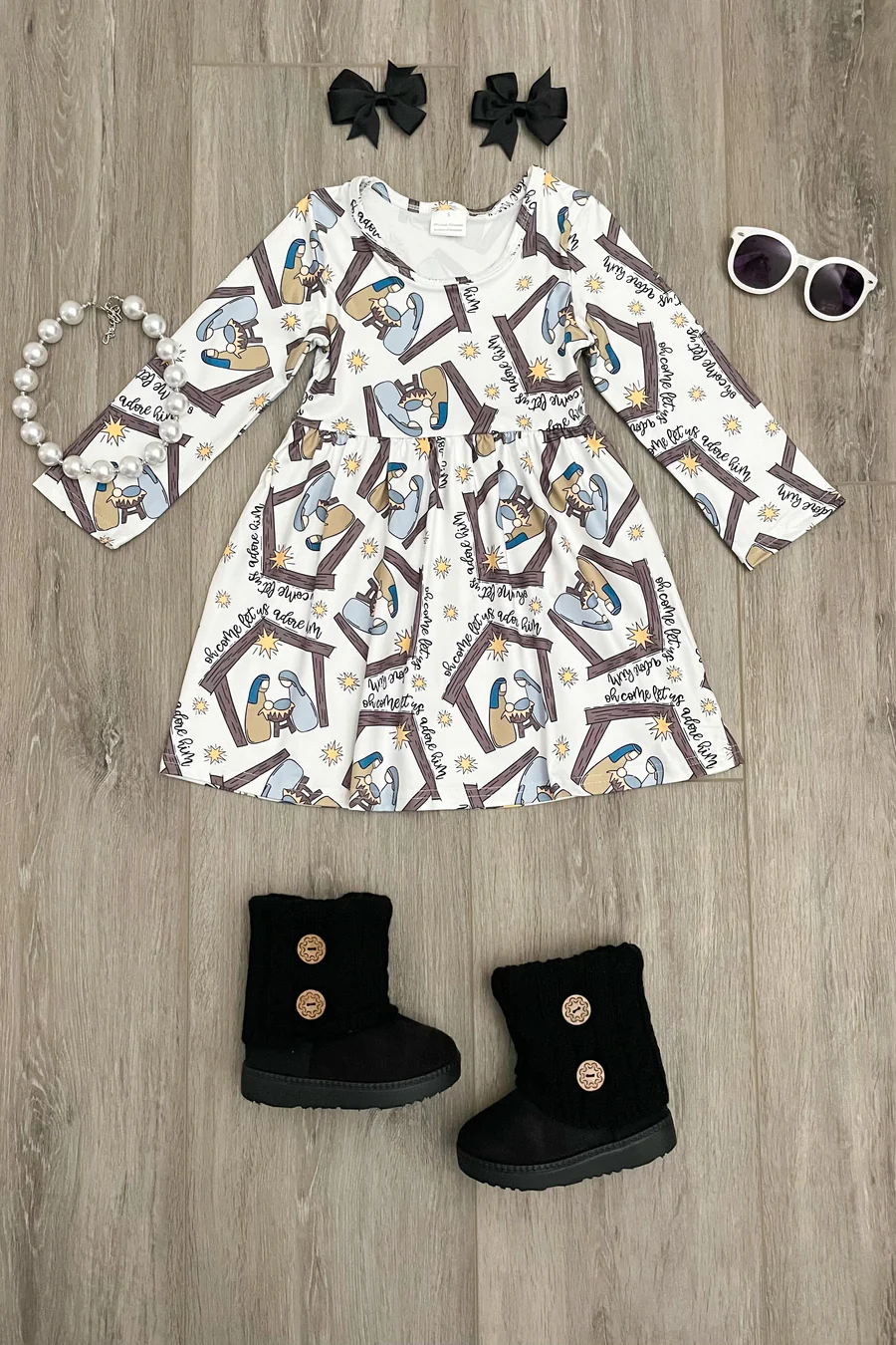 (Custom Design MOQ 5) Nativity Girls Christmas Knee Length Dress