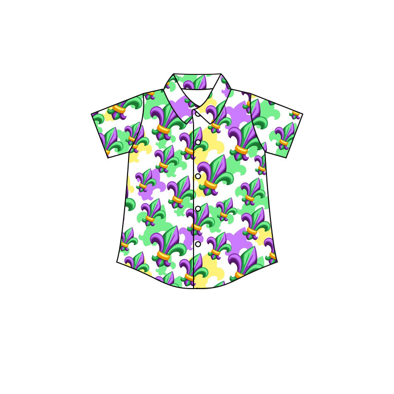 (Custom Design MOQ 5) NO.12 Mardi Gras Boys Button Tee Shirts Top