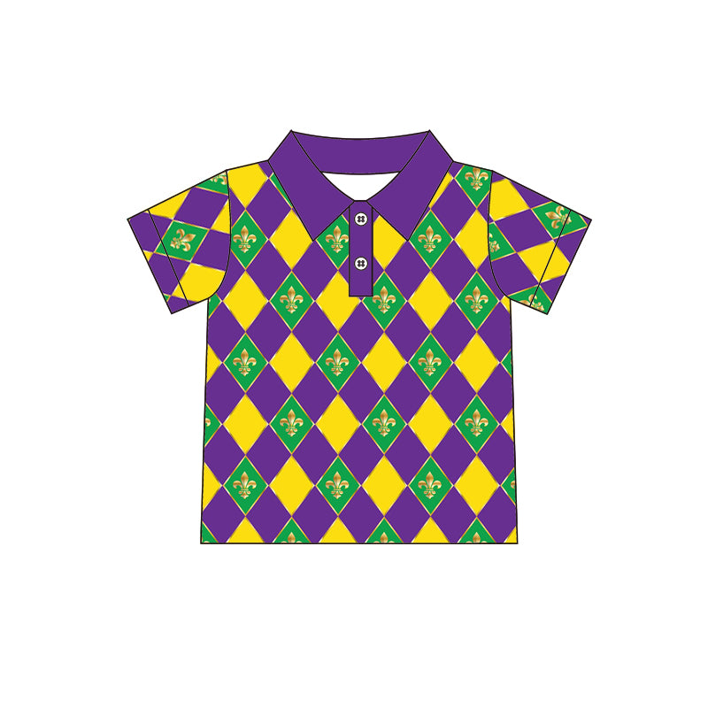 (Custom Design MOQ 5) NO.15 Rhombus Mardi Gras Boys Polo Tee Shirts Top